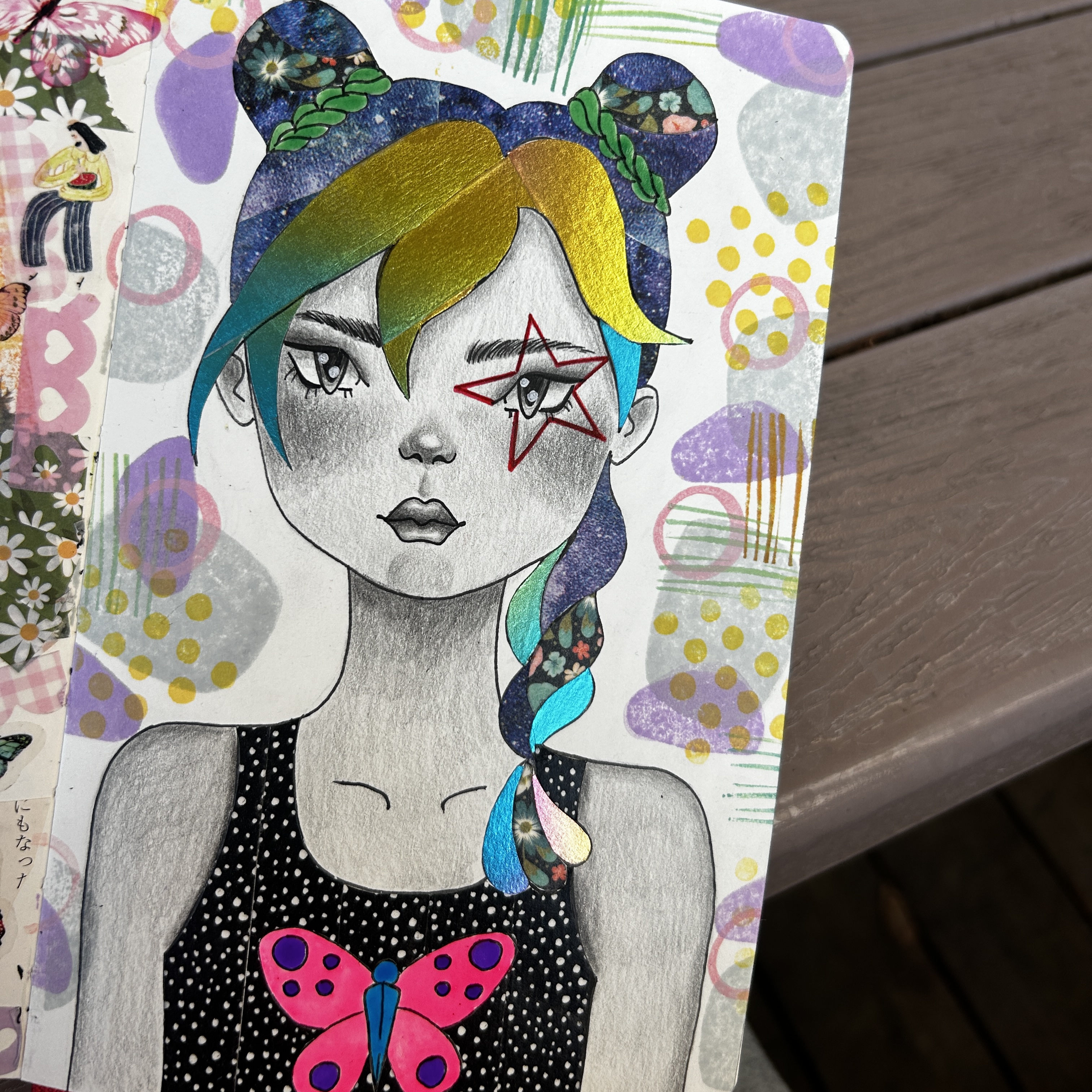 With Collage, Girl! I’ll teach you how to bring your characters to life without the stress of traditional coloring. This mini-course is perfect for anyone who loves drawing but wants to make their sketchbook pages fun, creative, and unique.